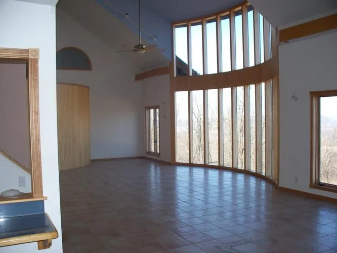 This is a bank owned and is now an absolute STEAL as priced , very upscale home with phenomenal view to the east from each level and privacy too. Built on a bluff, this home has 3 bedrooms, 3 baths, office area off MBR, kitchen with island, large over sized garage, mechanical room with water softener, separate laundry room, and den with fireplace. All this on over 18 acres of very private, secluded property. Additional features include a separate studio building that would be great for an artist or a writers retreat, or...? This property also has a separate work shop / storage building. If you are looking for an elegant home with property and privacy, this is it!