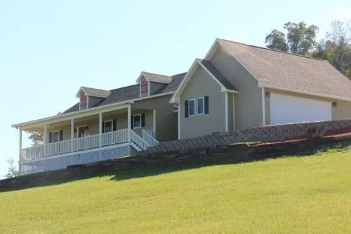 Country Home with 10 ACRES, built in 2006 with big views just minutes to Eureka Springs. Located near the Kings River and the Madison County Game Refuge 14000 plus acres. Very private quite setting with some of the best views in Carroll County. Country style home 1770 sq ft with a 732 sq ft finished garage and storage in attic. 3 bedroom and 2 full bath. Large master suite with French doors leading to deck. Quaker style windows with lifetime warranty, central heat and air is an energy efficient heatpump,2-40 gallon hot water heaters for ample supply of hot water for the Jacuzzi tub in the Master bath,Hardy board siding with blown in insulation then wrapped insulation under the siding for extra insulating protection, tile flooring and carpet. 800 ft deep private well with surge protection and 100 gal.concrete septic system. The home is hardwired for security system. Open floor plan living area with vaulted ceilings, many windows, french doors to deck and built in book shelves. Kitchen with Island and Red Oak cabinets. Covered front porch overlooking vineyard and expansive mountain view beyond.
