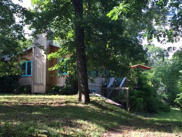 A native stone wood-burning fireplace anchors the living room and provides backup heat to the propane central furnace. Creative souls will make good use of the 13'9 x 24 studio/workshop with concrete floors and a pergola covered porch on the front and wrap-around decking. A new 10' x 16' wooden Derksen storage building with double doors on the front sits inconspicuously among some trees behind the studio.