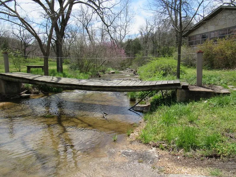 Oh my goodness ! The sweetest rock house nestled just across the stream . It even has a walk bridge over the stream. Comfortable , serene ... takes you back to the unhurried days. And it's sitting on 7.78 acres. The front porch is a lazy afternoon sitting place and the back deck overlooking the water flowing past the house is an incredibly lovely place to relax. This 2 bedroom home is jut a few miles from the fun entertainment that Eureka Springs is known for.