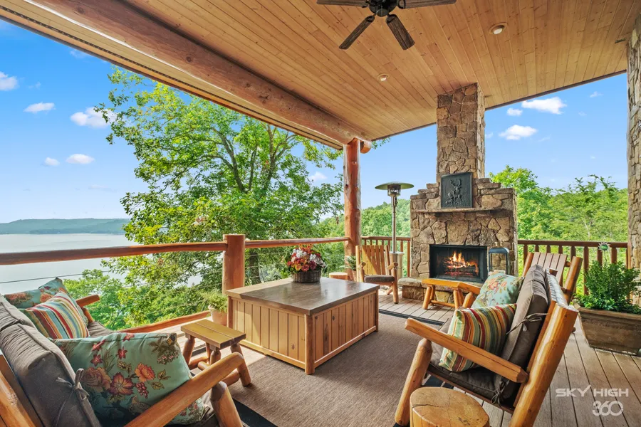 White oak quarter-sawn floors, vaulted beam ceilings, impeccable craftsmanship, hand-scraped oak herringbone ceilings, natural stone accents, designer chandeliers, 5 fireplaces, and a neutral color palette create an elegant canvas for this incredible residence. The expansive covered outdoor living areas include several decks offering alfresco dining areas, a grilling kitchen, stone fireplace, and front-row views of Beaver Lake. The residence also includes a 28-foot boat slip with a lift, conveniently located at Starkey Marina.