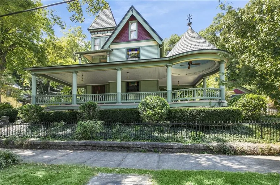 Welcome to the outstanding Dr. R.G. Floyd residence arguably the most desirable, most photographed Victorian home in Eureka Springs. The corner location on upper Spring St at Crescent Grade cannot be beat. This 1892 well preserved home, has 4 bedrooms, to be counted as a bedroom there must be a closet, there are 3 additional rooms that can be used as bedrooms that would bring the total to seven. Features include stunning period woodwork, including pocket doors (3 sets) in the two living room parlors and the diningroom adding to the Victorian charm. A beautiful covered front porch, covered upper balconies front and back ,full basement complete with a laundry shoot, 3 gas log fireplaces, a guesthouse (that was reportedly once a garage for Eureka's first automobile).There are 4 off street parking spots, 2 in the back and two in the driveway. The stately grounds even include a koi pond.