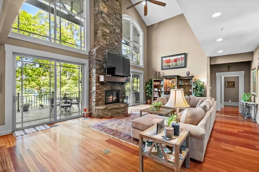 4-SLIP PRIVATE BOAT DOCK includes two 30' boat slips with lifts and two jet ski slips with lifts! Discover Lakefront, living at its finest on Beaver Lake with this extraordinary retreat nestled on over 3 acres of pristine waterfront property. This stunning 6,397-square-foot residence seamlessly blends rustic charm with modern luxury, featuring soaring walls of glass that frame breathtaking panoramic lake views from every angle. The thoughtfully designed three-level home offers five generous bedrooms and five full bathrooms, connected by a convenient all-level elevator. The heart of the home showcases a gourmet kitchen that flows into multiple entertaining spaces, perfect for both intimate gatherings and grand celebrations. The primary suite is a private sanctuary, complete with a separate living area/office, four-season sunroom, spa-inspired bathroom, and a covered patio overlooking the ...
