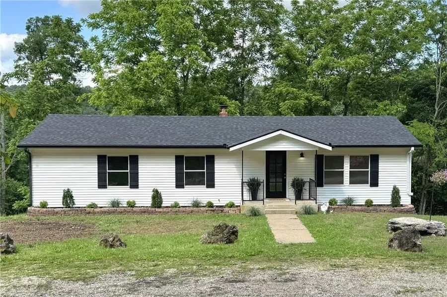 Move in ready home located just outside the city limits of beautiful Eureka Springs on 2 unrestricted acres! A full remodel was recently completed on this 2-story, 3 bedroom, and 2 bath home and you will love all the farmhouse charm and detail that was added! As you enter, you will find hardwood flooring and fresh paint in the spacious living room along with freshly updated cabinets with a beadboard backsplash, ceramic tiles, and new lighting in the kitchen. Down the hall you find 3 bedrooms with hardwood flooring, large closest, and 2 completely renovated bathrooms. Downstairs you will find an additional 768 square feet of living space that is open for a second living room, game room, or even additional bedrooms with slight modifications. Garage contains space for one vehicle and ample space for a workshop or storage. Garage is fully sheet rocked, heated and cooled. Private well. Roof is approximately 5 years old, HVAC dated 2017, new HWH installed 2025, well pump dated 2018, pressure tank installed in 2025.