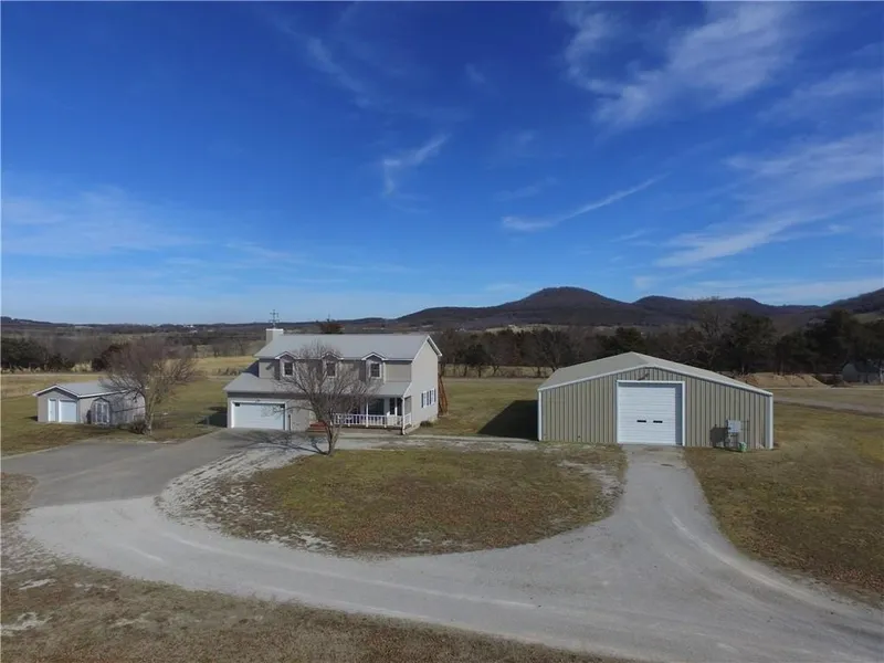 Great Location with Amazing Views! Nice 3BR, 2.5BA home that's 2,246 sq. ft. Just over 3 acre yard, fenced area for dogs, gazebo, 2 level deck on back with patio. 50x70 red iron shop with 2-14x14 doors with opener's, insulated, power, water, drain, bathroom inside, air compressor and zero turn mower stay with the property. Attached garage, detached garage, and storage shed give you plenty of room for all those toys. Located inside Berryville city limits, zoned R-1 residential. Close to shopping, just minutes from Table Rock Lake, Kings River and Buffalo River. Branson MO 45 minutes away, Rogers, Bentonville, Fayetteville all just over an hour away.