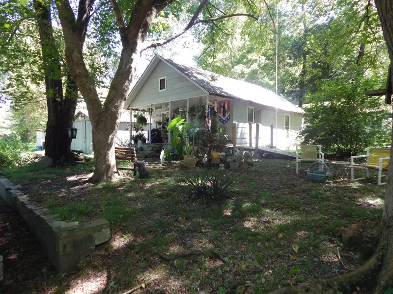 Home approx. 616 sq.ft 2BR, 1BA with a great setting. Property joins Hwy 21 South and has about 2.33 acres. Private well and septic. Wet weather creeks along side and in front of the house, nicely shaded yard with 2 outbuildings and a storm shelter at ground level built into the hillside. House has a Berryville Address but Berryville, Huntsville, and Kingston buses come by.