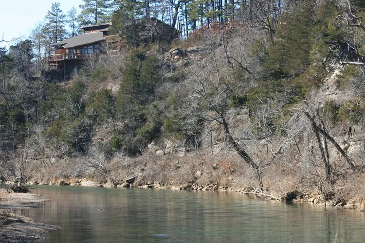 BLUFF TOP RIVERFRONT HOME AND 33 ACRES. Gated entrance, Spectacular setting and Quality home constructed of Native Stone and Cedar. 6600 sq foot of heated space which include indoor pool and greenhouse, unique design and craftsmanship. Many floor to ceiling windows and skylights bring nature indoors for year round enjoyment. This spacious home boasts of 4 bedrooms and 4 1/2 baths, exercise room, master suite with fireplace,sunken den, great room, formal dining,intercom and alarm system, walk in safe, 2 1/2 car port, 3 stall garage, workshop. Vaulted ceilings and native stone fireplace in the Great Room. Tongue and grove thru out add an elegance that will make an impression on guest that appreciate LUXURY and BEAUTY. Walkout french doors to extensive decks overlooking a STUNNING VIEW of the KINGS RIVER and mountains beyond. The 33 ac is a perfect blend of pasture and woods with bluffs dropping to walkdown riverfront. Over 1100 feet of river frontage, swimming holes, fishing, gated entrance, surround by large land owners promotes seclusion, privacy and security.