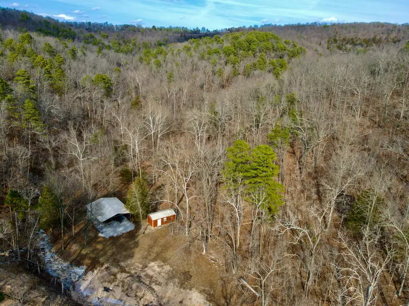 The land showcases amazing topography with level valleys, sloped hillsides, and flat mature timber mountain tops. The property lends itself to excellent usability for trails, recreation, or additional building areas. A scenic creek winds through the property, enhancing both beauty and wildlife appeal. Deer and turkey are abundant, making this an outstanding recreational or hunting getaway.