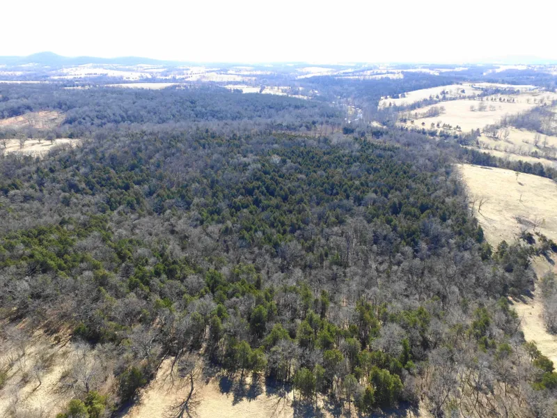 Land lay mostly level at end of lane. Owned by homestead family all these years. Was pasture at one time but is grown up in cedars....full of deer. Near Kings River, lakes and Branson, Missouri. Farm land surrounds and land rarely available in this area.