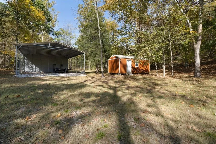 Forty Unrestricted Acres in Eureka Springs! Beaver Lake area. 30x35 Carport. 12x24 Shed. Beautifully landscaped and cleared for building. Wet weather creek flows along the edge of property. Culvert has been installed at the entrance. Exceptionally level coming into the property with plenty of areas to build! Surrounded by wooded views! Deer blind is towards the back of the clearing. At the highest point of the property, with winter views, you are able to see the lake! Minutes from a community boat dock, and about 15 minutes to Eureka Springs! So many possibilities !