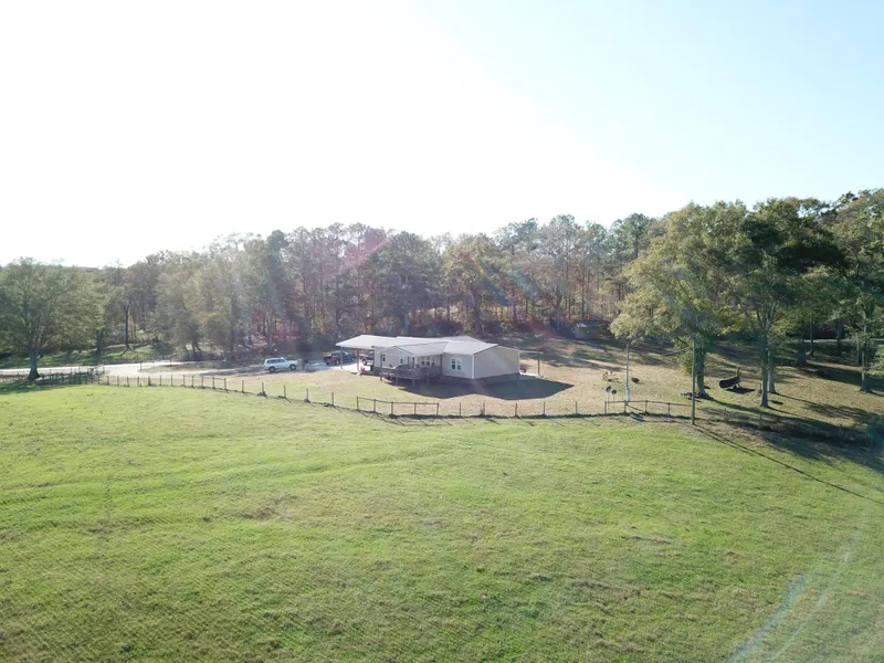 Sitting atop a hill overlooking the farm you will find the home. The three bedroom, two bath home sits on a fixed foundation and has a carport added. Throughout the home you will find Hickory Floors that really accent the home. There is a nice rocking chair front porch and a back covered patio. The master bathroom has a walk in shower and a garden tub. The living room features a built in fireplace. Too many features to mention them all!!! Did we mention the large yard that has some majestic oaks that cover the back yard.