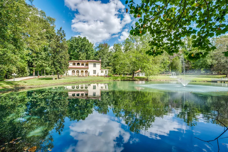 Get ready to fall in love with this amazing architectural gem set in a 22- acre estate! Prepare to be captivated by the elegance and charm that this private sanctuary and alluring property offer. Drive through the welcoming gates and view a vista with a charming villa, a lovely lawn, a two-acre lake, and a beautiful swimming pool as well as acres and acres of woods.