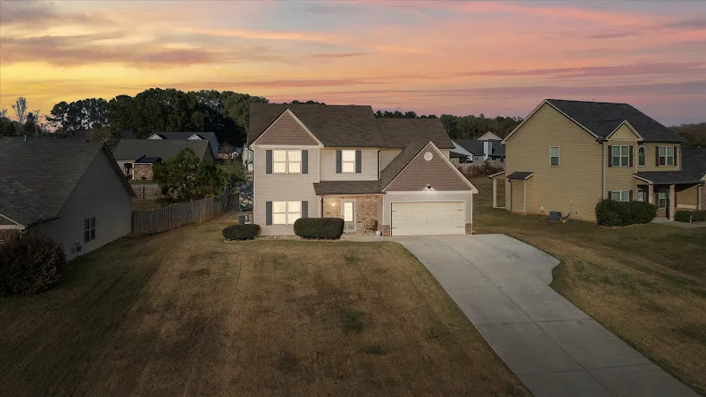 This beautiful 4-bedroom, 2.5-bathroom home offers spacious living with room for the whole family. This home is equipped with advanced smart home technology, featuring a state-of-the-art security system with cameras, smart thermostats for energy efficiency, a smart dishwasher, and solar panels to reduce utility costs for more affordable living. The main level features new fresh paint, soaring 10-foot ceilings, and new carpet installed 2 years ago. So much space is offered on the main floor including: a living room with a stone fireplace, a well-equipped kitchen with bar seating and eat-in kitchen area, a separate dining area in addition to an extra bonus room great for a playroom, office, or additional relaxing area. Upstairs features 4 spacious bedrooms, including an oversized primary with a sitting area and convenient laundry next to the primary bedroom. Enjoy outdoor living on the extended patio with a pergola, accompanied by a convenient outbuilding for extra storage or workspace. This home is the perfect location in the neighborhood with the pool walking distance right across the street. Centrally located, providing easy access to shopping, dining, schools, and the interstate for ultimate convenience. The seller has an amazing 2.75% interest rate that is assumable.
