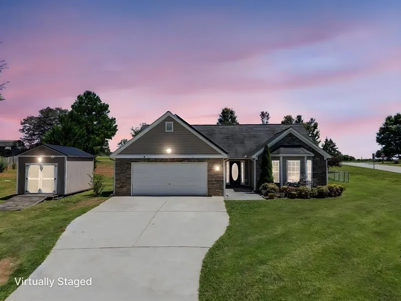 Charming Stepless Ranch on .79 Acres with Solar, shop and sunroom! This beautifully 3BR/2BA ranch offers easy one-level living with a spacious owner's suite with bay window, featuring a walk-in closet and a fully tiled, handicap-accessible large shower. Enjoy the flexibility of a bright sunroom with tile that can double as a 4th bedroom or office. The open kitchen overlooks a cozy family room with a gas stone fireplace. Energy-efficient solar panels (cost seller 30k) keep costs low-plus, unused energy gets sold back to the power company! Outside, enjoy a fenced backyard, patio wired for a spa (60 amp), and a powered workshop with RV hookup 30 AMP. Don't miss this rare gem-it won't last long! This is a USDA eligible area for zero downpayment.
