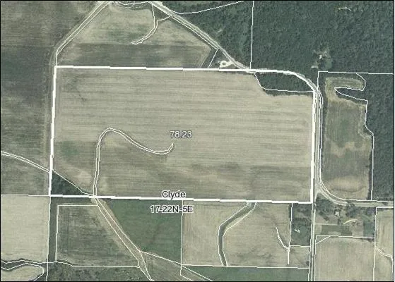 79.4 +/- acres in clyde township for sale. $5,800/surveyed acre. 75.46 acres tillable with an average PI of 119.