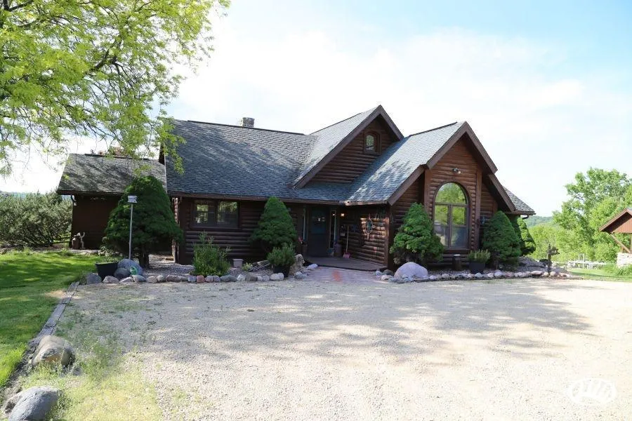 It’s not very often you come across a country estate with the quality, seclusion, tranquility, and views this home has to offer. This well maintained acreage and 3,868 sq. ft. log home is everything you could ask for. The main level has two large bedrooms, large living room, kitchen and dining room, screened in porch and an enclosed hot tub room. The master bedroom has a large bathroom and double walk in closets. The loft area could be used as a sitting area or would make a great office area. Make your way down stairs and you’ll find two additional bedrooms, laundry area, storage room, full bathroom, large living room, and a custom built bar area perfect for entertaining guests. The sellers have paid attention to the details in every aspect of this house. It truly is one of a kind and sure to please most anyone. The yard area has excellent views across the countryside and the exterior de...