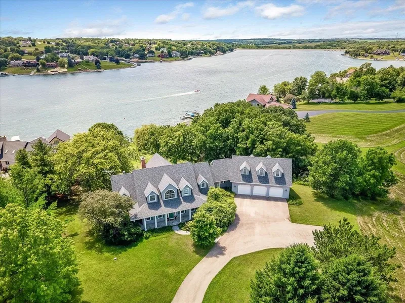 Welcome to your private retreat at Lake Carroll! This beautifully designed 5-bedroom, 4.5-bath Cape Cod-style home sits on 1.42 acres of prime waterfront and offers lake views and a thoughtful blend of relaxed comfort and refined features. Inside, you’ll find an inviting open layout enhanced by solid maple floors, Pella windows, and two custom wood-burning fireplaces (brick and stone, both with gas starters). The chef’s kitchen is a standout with granite countertops, quality appliances, and room to gather. The main level also features a spacious living area with three new sliding doors framing the lake, a formal dining room, main-level laundry, and a serene primary suite with deck access, a private bath, and heated floors. Upstairs offers three spacious bedrooms, including a private in-law/guest suite (16’ x 39’) with its own mini kitchen, full bath, and cozy window seat storage. The finished walkout lower level (with heated floors) includes two bedrooms—both with walk-out access—a large family room, full bath, a full wet bar for entertaining, a hobby room with a second laundry area, and an additional bonus room ideal for extra sleeping space, a den, or office. Enjoy outdoor living from the brand new deck (2024), complete with a hot tub, overlooking 80’ of shoreline with electric and water available at the pier—perfect for your boat lift. The oversized two-level garage accommodates up to 6 vehicles, with access from both the front and rear of the home. Additional features include a stereo system throughout and privacy provided by an adjacent greenway. Recent updates include a new furnace, A/C, and water heater as well as garage door openers, making this home move-in ready and ready for lake life. Call today to schedule your private tour of this exceptional Lake Carroll waterfront property! Buyer and or buyer agent to verify all information, sizes, square footage, figures, school zones, taxes, exemptions, and zoning. Sizes and measurements approximate.