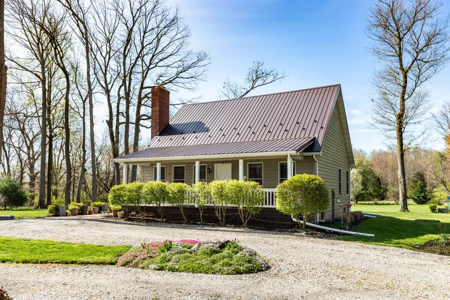 As you drive through the gates leading to this homestead, you'll feel right at home in your own personal sanctuary. Tucked away on a level 2.88-acre lot this property has all of the features of a park-like setting surrounded by beautiful trees, shrubbery, and flowers. The spacious cape cod style home offers three generously sized bedrooms, two full baths, and a spotless lower level. The primary bedroom is conveniently located on the main level and features an immaculate full bath. A covered front porch and an open-air deck right off of the kitchen and dining area are perfect for entertaining. Additional amenities of this home include a metal roof (2017), a completely remodeled kitchen with an abundance of soft closing drawers and cabinets and stainless-steel appliances, replaced floorings (2018, 2022), a Pioneer mini-split (2019), ceiling fans with lighting, and a brick fireplace which includes an energy-saving top damper installed in 2018. The cedar siding exterior fits perfectly with this property and setting. The circular driveway allows for an abundance of parking for guests along with a three-car detached garage for your toys.