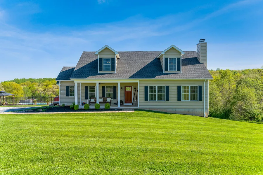 Welcome home to this 12.3-acre turnkey farmette waiting for you and your horses. This property boasts a nine-year young, custom-built, three-bedroom, two-and-a-half-bath Cape Cod ideally located in a beautiful setting at the end of a lane. The inviting open concept floorplan is ideal for entertaining. The main level features a great room with a custom wood-burning fireplace, a primary bedroom with an en-suite, a kitchen featuring a bi-level island, double ovens, granite countertops, a copper farmhouse sink, and easy to close cabinets with under cabinet lighting, and a formal dining room adjacent to the kitchen. The separate laundry room and powder room complete the main level. Sliders off the kitchen lead to the expansive deck with panoramic views overlooking the property and the 24 x 24 barn which is equipped with electricity and a Nelson automatic waterer. Panning around you will see a horse pasture, a tack/feed room, a playground, and the three-year-old 18 x 26 saltwater in-ground pool. The pool area is landscaped and is ready for your relaxation, including a gazebo for a shady retreat. The upper level of this home includes two large bedrooms with dormers separated by a hallway and a full bath. The lower level features a beautiful family room with nine-foot ceilings, a wood stove, built-in shelves, and custom-made interior window shutters. Additionally, there is a finished bonus room with a closet for your specific needs. The remaining unfinished space consists of a rough-in for a full bath, utility equipment, and approximately 300 square feet of storage area. Simply walk out the double door slider to a concrete patio below the deck. Look no further, this oasis could be your forever home.