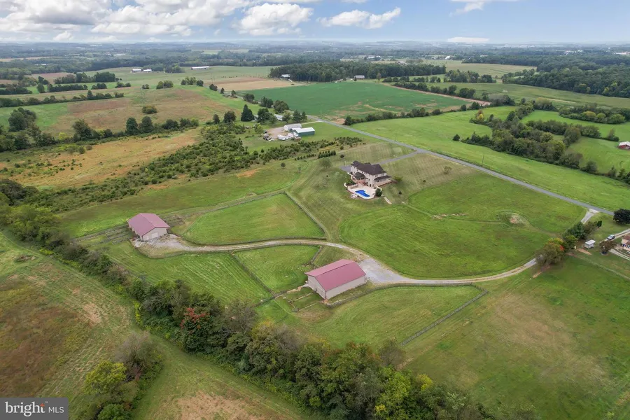 This IMPRESSIVE COUNTRY ESTATE is BACK ON THE MARKET! 12 acres, 5 spacious bedrooms, 3.5 baths, a heated inground pool, 2 large outbuildings supplied with water and electric, and fenced paddocks equipped with automatic waterers. This one-of-a-kind home was designed and meticulously maintained by its owner and offers more than 7,000 square feet of living space. The home boasts 3 fully finished levels including a lower-level walkout onto the pool deck. Just a few of the many features included are an oversized 3-car garage with work bench, storage, and built in stainless utility sink, a custom brick covered patio which overlooks the backyard, whole house intercom and audio, security systems, central vacuum, 3 zone heating/air, custom cabinetry throughout, enormous amounts of storage, and so much more. Another great feature of this property is the underground invisible fencing which allows the pups to roam over about 10 of the 12 acres. This property's quiet pastoral setting has easy access to major routes, restaurants and entertainment.