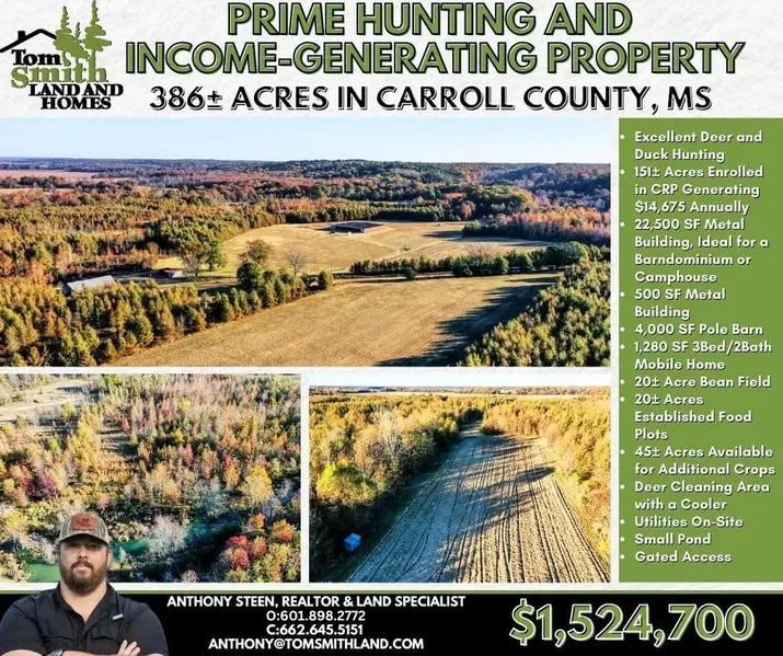 Take a look at this 386+/- acre tract located in the Mississippi Delta, right on the edge of the hills in Carroll County, MS.