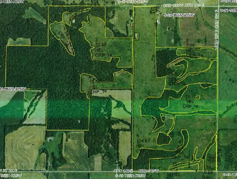 Located in NW Carroll County, MO. 441+/- total acres with 256.44+/- tillable acres. This farm is a good mix of tillable and timber acres that makes for good hunting. The CRP contract has expired so it is available for row crop in 2015 or could renew in CRP. Priced at $3,000 per acre.