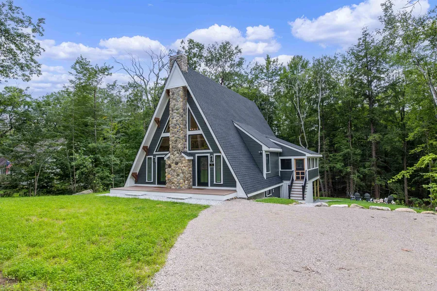 This exquisite custom-built contemporary A-frame is nestled in the serene setting of Eidelweiss. With three meticulously finished levels, this home offers unparalleled flexibility in living spaces. Step into the lower level, where a spacious open living area awaits. Ascend to the main living level, where you have not one, but two decks! And a screened porch perfect to enjoy the fresh air of the mountains. Inside, revel in the seamless flow of open living space, adorned with stunning hardwood flooring, wood ceilings, and walls that effortlessly blend into the contemporary kitchen boasting high end finishes to include the exclusive Zline appliances. Warm up by the inviting wood burning fireplace, completing the ambiance of comfort and luxury on this level. Venture to the top level to discover the loft that overlooks the main level and the primary ensuite. Residents enjoy exclusive access to the three Pea Porridge ponds, accompanied by five beaches, perfect for swimming, paddling, or just a day at the beach. With several renowned ski resorts and the vibrant shopping and dining scene of North Conway within easy reach, every day presents a new opportunity for adventure and relaxation. Embrace the epitome of idyllic vacation living and make this remarkable home your own personal retreat amidst the beauty of Eidelweiss. (please note that the septic is a 2 Bedroom Septic) Showings begin at the open house on Sunday, August 11th.