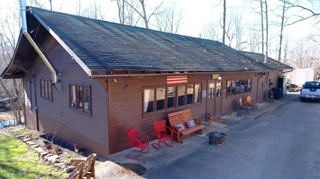 A long driveway leads to this awesome Campground | Air BnB | multi-Generational homes | Hunting Lodge | Glamping Retreat | Party Venue. TWO Retreat buildings, both made to live in year-round, on 20.348 wooded acres surrounded by two streams, Big Sandy Creek & Hogle Run. LODGE - a Huge 2,139 sq. ft. Lodge with Central Air rebuilt in 1970, a GREAT ROOM with 9 1/2' raised ceilings, Knotty pine on walls and ceiling, measures 44x27 with large fireplace, wood burning stove, gas wall heaters, scenic view in every direction. Spacious kitchen measures 24 x 14 with Cafe Convection oven over 5 burner Gas cooktop, (both installed April 2023) newer stainless refrigerator (installed Dec. 2022), Bedroom is 33 x 10, vinyl flooring. Newer furnace & hot water tank (both installed 2022) PLUS CABIN, 1,200 sq. ft cabin with knotty pine on ceilings and walls, has a big fireplace, measures 42'x15', back room measures 27'x11' furnace (needs to have final install) and gas wall heater, utility room with hookup for washer and dryer. Electric Box has room for SIX More cabins. Situated in the foothills of the Appalachian Mountains, the Great Trail Girl Scouts opened their first camp here, Camp Sandoneida in 1924, which served the Scouts well into the 1990s. Security system installed all around property; enjoy Wildlife, hunting, hiking, ropes course, archery, horseback riding, maybe even Zip Lining! 2 pavilions, potential timber for harvesting. Natural Commercial level Gas service to the property.