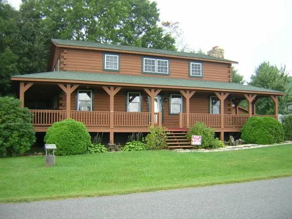 Well built log home with wrap around covered deck. Has 20 foot ceilings in great room with a large rock fireplace and balcony. Has a full finished basement with 6 rooms including a kitchenette. Includes a woodstove, 2 monitor heaters and a detached carport. Set on a nice level lot with a 1,208 sq. ft. building that was formerly used as a church. Nicely landscaped and has good pastoral views!