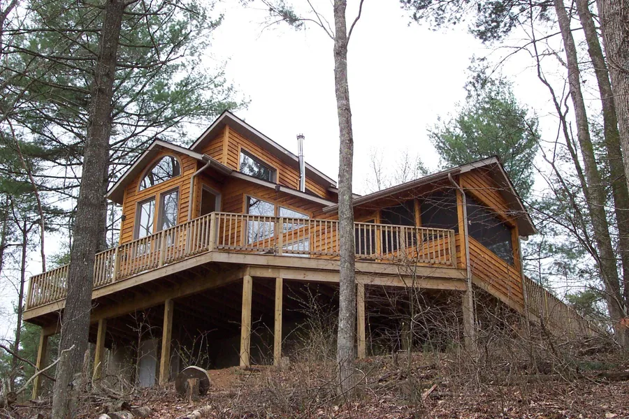 This very nice 2 bedroom 2 bath cabin is located in the River Pointe Subdivision and features hardwood flooring, heat pump, great room with a wood stove and cathedral ceilings, dining area, kitchen with a gas stove, a main level bedroom, and a nice full bathroom with washer and dryer hook ups! Upstairs you will find a loft overlooking the great room and another bedroom and full bathroom! Other features include a covered side porch, rear and side decks, a large storage space under the house, a hot tub and an outdoor shower! All of this sitting on a 5 acre tract which offers over 500 feet of nice creek frontage on Little Reed Island Creek!