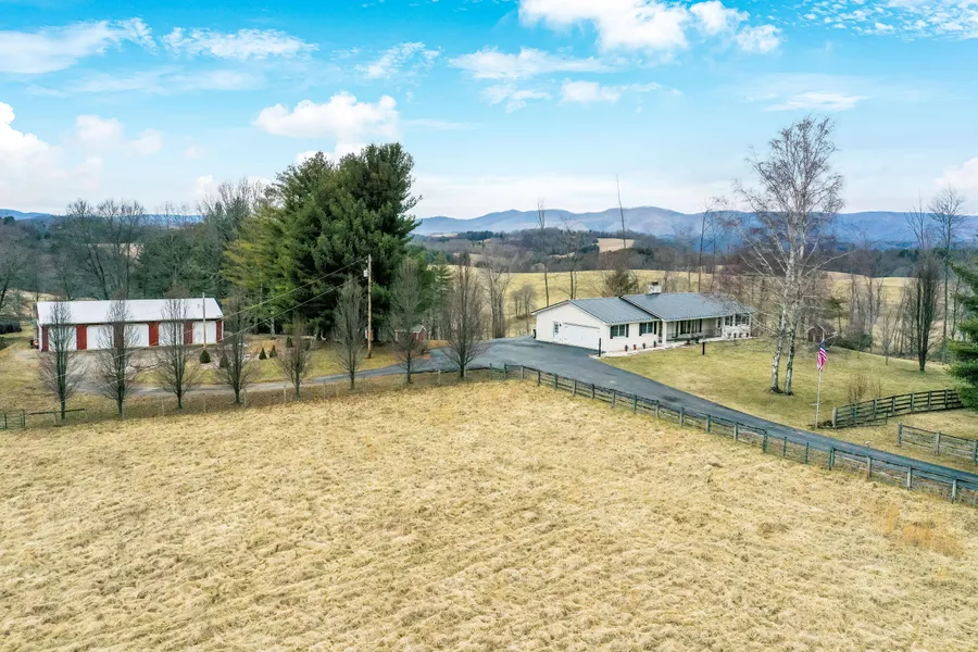 Amazing house and 20 ac horse farm with long-range mountain views and water! Check out all these features! One level living (master on main), 3 total BR on main level and 4th BR in basement, privacy, remodeled kitchen (granite countertops, custom cabinets, farm style sink), new metal roof, oak hardwood floors, solid oak interior doors, double-sided gas log fireplace, whole house generator, heat pump and wood stove, two car attached garage, five bay detached garage (74'x36') with high ceilings that could partition part of it for horses, multiple fenced fields, long straight and level paved driveway, fenced garden space, bold spring water with a spring fed water trough for livestock and a spring branch on the property. This truly is an amazing property just ready for someone to make it their home. The partially finished basement also has a third full bath and kitchen and the 4th BR. This extremely well maintained house and excellent land can be yours!