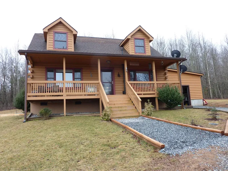 Well built and cared for 3 bdrm, 2 and a half bath cabin on 1 cleared acre surrounded by 15 private and serene wooded acres. First level offers an open living/kitchen combo, master bedroom with walk in closet and attached master bath with a large, recently installed walk in shower. Laundry room/half bath combo are also located on the main level. Upstairs consists of second and third bedrooms and the second full bath. Hardwood and ceramic tile flooring on the main level. Carpet on the second level. Beautiful knotty pine paneling throughout the cabin. Ceiling fans in every room. There is a dual heat pump system. One for lower level of home and a second for the upper level. Wood pellet stove in the living area and a Generac standby generator to support entire lower level. This home is move in ready and perfect for full time residency or as a private and secluded mountain get away. Grab your...