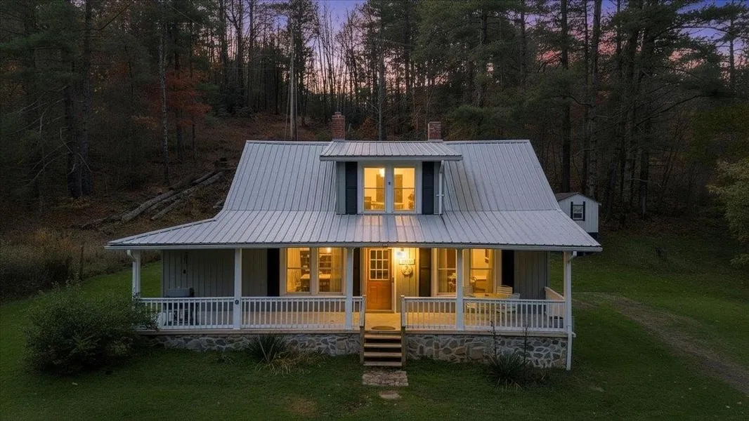 Welcome to this beautifully refreshed farmhouse set on just over half an acre with peaceful creek frontage! The main level features a warm, inviting living room wity solid wood floors, and an eat-in kitchen with all major appliances. There’s also a dining area, a main-level bedroom with built-in shelving, and a full bath with washer and dryer hookups for added convenience. Upstairs, you’ll find three bright bedrooms and two large hallway closets for extra storage. Recent updates include new vinyl siding, a metal roof, replacement windows, fresh paint, and a heat pump for year-round comfort. Enjoy outdoor living on the spacious covered front porch overlooking the creek, or thr private back porch. Conveniently located just minutes from downtown Hillsville, I-77, and the Blue Ridge Parkway—this move-in-ready home blends modern comfort with timeless charm!