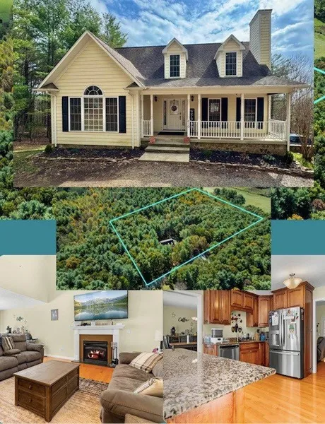 3 bedroom, 3 full and 1 half bath custom built cape cod style home just 10 minutes outside of Galax with 5 private, wooded acres, all at the end of the road. Open living with vaulted ceilings and formal dining room. Custom kitchen has granite counters, some new stainless appliances, island with storage and barstool seating. Off the kitchen is the laundry with more storage, half bathroom, and entry to trex deck. Deck also has a gas hook up for a grill. Master suite on the main level with vaulted ceilings, and bath offers double sinks, jet tub, a tile walk in shower, and walk-in closet. 2 bedrooms upstairs and another full bath with large vanity and shower/tub combo. Large windows for natural light and hardwood flooring throughout. Downstairs bonus room with closet, another full bath with shower/tub combo and large vanity, utility room and 2 car garage with room for more and another cold storage room under the front porch for even more storage. Maintenance free living outside with Hard plank siding and rock, with covered concrete front porch. Enjoy the properties' trails or sit by the fire pit and watch the sunset. In-ground dog fence and new water filtration/softener system. $200/yr road maintenance fee. Owner has home treated for bugs monthly and has had all gas lines inspected and serviced as well as the HVAC serviced less than early 2025.