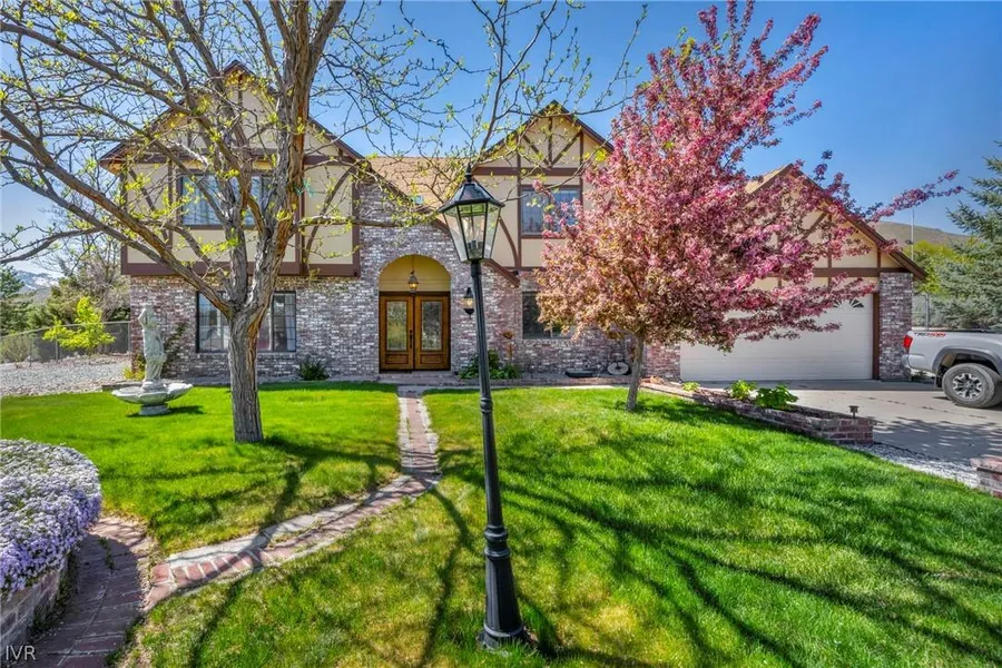 CASUAL ELEGANCE! This French Tudor style custom home boasts a newly remodeled chef's dream kitchen with pantry, perfect for culinary adventures and cozy family meals. With it's spacious eat-in kitchen and family room, living and dining rooms, bonus room, four bedrooms, two and a half baths, there is ample space for comfortable living and entertaining. Large primary suite with vaulted ceilings, his and her walk in closets, double sinks, spa tub, walk in shower and work out room. Step outside onto the 400 square foot covered patio and enjoy the serenity of 1.14 acres of land, complete with a variety of pine trees, ever blooming lilac tree, fruit trees and a fenced garden for planting seasonal vegetables and berries. Detached third car garage or workshop or garden shed. There is plenty of room for an RV and outdoor adventure toys. Ride to the off road trails from your driveway and explore the wide open country. Come see this home and make it your own oasis!