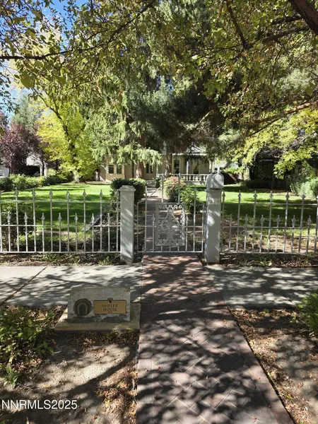 Nevada's first Governor's Mansion, this lovely lady was born in 1878, and has never been more attractive! Enlarged in early 2000, and updated several times over the years, the home is largely authentic to the era but benefits from thoughtful and selective modernization. The formal living room, reception area, parlor, and dining room are lit by beautiful chandeliers enhanced by authentic ceiling medallions and are otherwise true to the original design... absolutely captivating! The kitchen is a dream with a six burner Wolf stove, 2 dishwashers, glass fronted cabinets, informal dining area, and an enormous panty with sliding shelves. A very large family room leads to a versatile office space. The primary bedroom is large, with ample storage and closet space. Double lavs and shower complete the space. Just enter the driveway and you will be captivated by the lush landscaping, the ample parking, and the large separate garage! Fully fenced with entry gate for privacy. The price reflects the need for moderate deferred exterior maintenance. Words cannot describe this property adequately.... you must see it for yourself. Call for an appointment!
