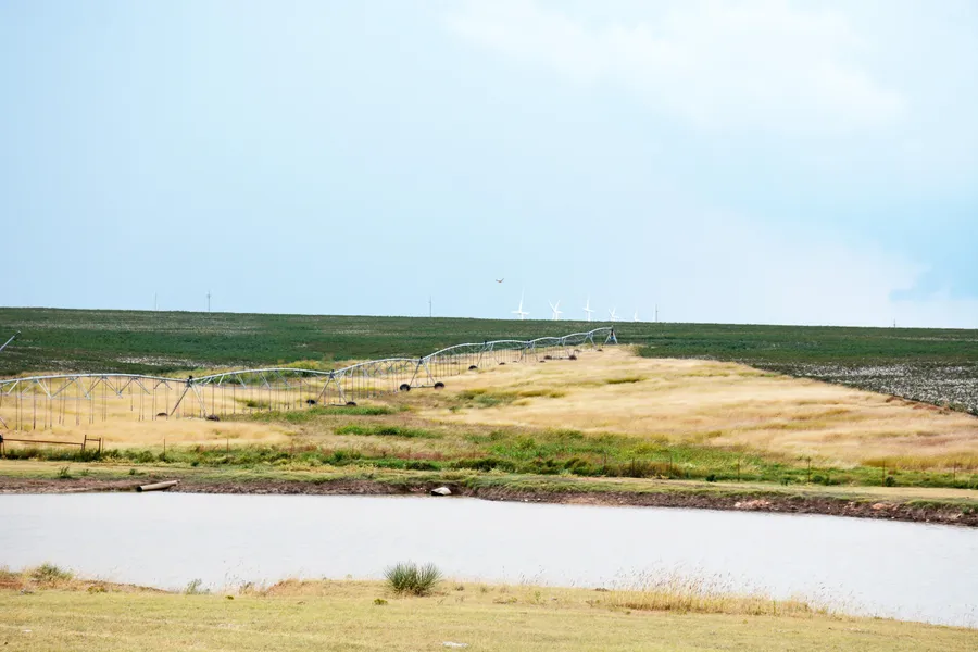640 +/- acres with up to 350 feet of saturated thickness according to the Panhandle Groundwater Conservation District. Two center pivots located on the west half are full circles and irrigate 121 acres (Reinke) and 110 acres (Valley). The east half has an eleven tower Valley center pivot that covers a half circle of approximately 102 acres. One well with a turbine pump provides 800 GPM. The engine currently powering the pump belongs to the tenant. Remaining acreage on the property is native and improved grass with a draw dissecting the property from south to north. Three dirt tanks are dammed up along the draw and the farthest south tank is...