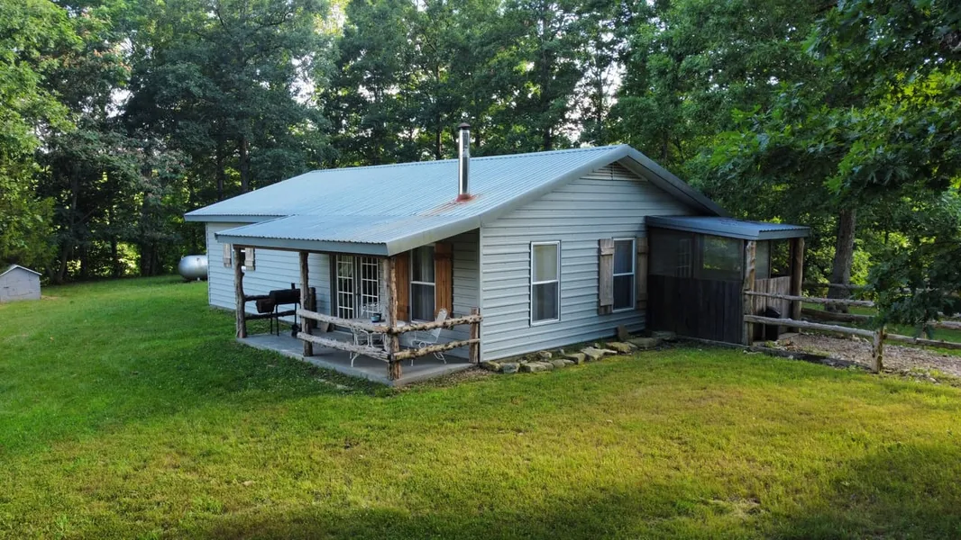 Super cute Country Cottage in an absolute picturesque, serene, secluded location! This 2-bedroom 1-bath home nestled on 10 acres m/l has so much to offer. Let's start with a 30x40 shop building along with 2 huge haybarns and an 8-stall horse barn. The hilltop that the home is perched on is scattered with multiple fruit trees and beautiful perennial flowers all about. Talk about a homesteader's dream! This property joins a continuous tract consisting of more than 5700 acres of Mark Twain National Forrest ground. This tract of Federal Government land Joins Peck Ranch Conservation area that is ground Zero for the Missouri Elk Restoration Program, where Rocky Mountain Elk were reintroduced to the area more than 10 years ago now. As a Missouri Resident you'll have a chance to Lottery Draw an Elk Tag and Hopefully get a shot a hunting these majestic animals that are known to frequent these fields and ridges right in front of and behind the house. Take a look at this one and you just might see some elk while you're at it!
