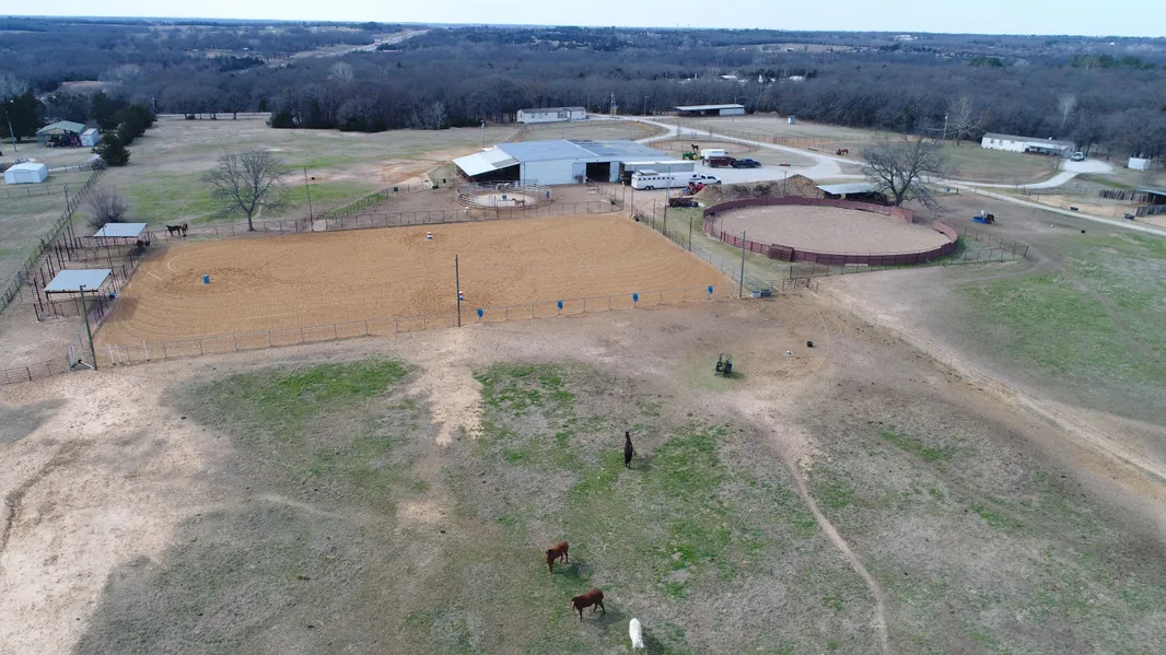 145' x 250 Lighted arena with 2 covered stalls and 4 open stalls