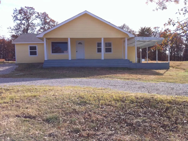 This home has been completely remodeled to include, new drywall, and new paint throughout. The master suite is a completely new addition to the home, complete will full master bathroom. There is new flooring throughout the home. As you walk in, you see the open concept living room and kitchen. All the cabinets have been completely updated, and a glass mosaic tile backsplash added. This kitchen has all new stainless steel appliances: counter-depth fridge, over the range microwave, electric range, and dishwasher. It has ample counter space and storage. The kitchen also opens up to the dining room. The dining room has sliding glass doors and a walkout covered deck. There are two other bedrooms (besides the master) that have been updated with neutral paint and new carpet. All of the bedrooms have an amazing amount of closet space. The bathrooms both have built in storage, as well. The hall bathroom has been taken back to the studs and rebuilt with new plumbing, electric, new vanity, new toilet, new drywall, new tile, new tub, and even new lights. The tub has a tasteful slate tile surround. The front bedroom has sliding glass doors that lead to a huge, covered patio. This patio has stairs to the front porch as well. The outbuildings include a large open metal building, closed on 3 sides. There is an electric hookup for an RV, etc. Behind the home, there is a smaller building with room to park a vehicle, and a separate area for a workspace. Next to this building, there is a storage shed and a storm shelter. OG&E provides the electric service and the home uses rural water. This home is located on Memorial Rd., which runs parallel to HWY 70. It is a couple miles from the Black & Gold Casino, tanning, a little restaurant, and a Dollar General. Its a straight shot to Ardmore, just 20 minutes to the East. If you are looking for an updated home in the country, this is the place for you.