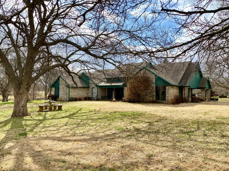 This custom-built quality construction rock home sits on 165 acres with over 120 pecan trees, 4 ponds, natural springs, and a creek that provides refreshment for cattle and wildlife. The land is comprised of approx 75% pasture/ 25% woods and is completely fenced and cross-fenced. The layout of this property is unique and could easily be divided as some of the land is crosses the road and has its own water well. There are 3 water wells in total. One that services the smaller rental property, one across the road, and the other services the house and shop building.
