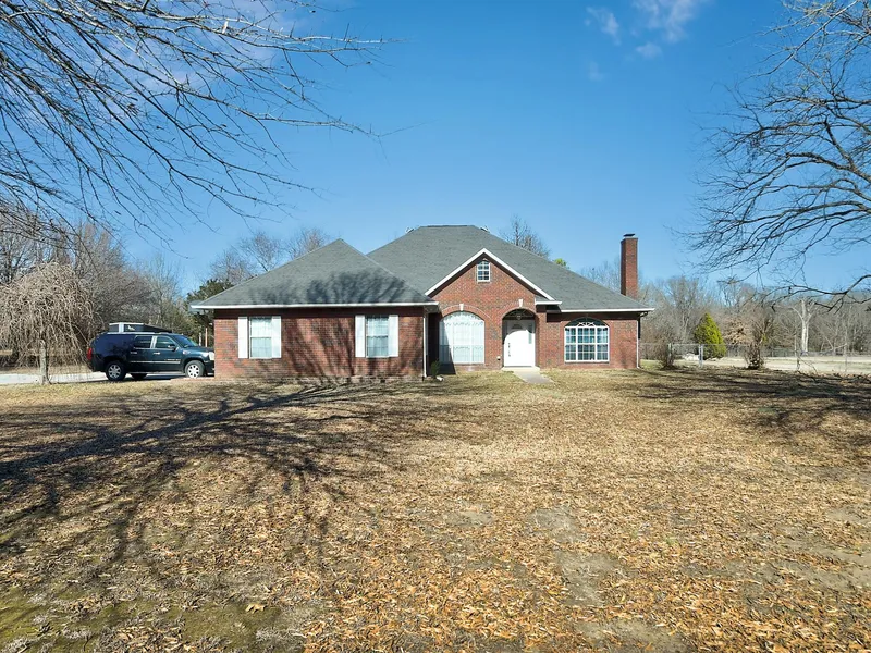 A must-see to appreciate! This lovely four-bedroom custom home was designed and built by a local builder with attention to detail throughout. From the moment you walk through the front door, you will appreciate the library/office with beautiful custom woodwork, built-in bookcases, a fireplace, and crown molding. The formal dining is open and joins the living room space with double doors on each side of the wood-burning fireplace to access the exterior covered porch area. The backyard has room for gardening, plenty of room for pets to roam, and is completely fenced with six gates for access. Along the north, the perimeter is a wet weather creek that draws wildlife for your viewing pleasure. The main bedroom is spacious with an adjacent bathroom complete with a jacuzzi tub, shower, and walk-in closet that also serves as a safe room. At the opposite end of the home, you will find three additional bedrooms, with the largest of the three bedrooms having access to the fenced yard. This layout makes for a perfect mother-in-law arrangement. The kitchen has abundant countertop space, a cooktop, and a double oven for entertaining large groups. There is a breakfast nook, a large laundry room, and a half bathroom off the kitchen. This home offers quality craftsmanship and elbow room from your neighbors with just under 3 acres. Additional extras include an updated hot water heater, updated carpet, partially floored attic, trash compactor, security system, solar-powered attic fan, and several large pecan trees. This property is located 10 miles from Lake Murray State Park, 34 miles from Winstar World-Class Casino, and 24 miles from Turner Falls State Park.