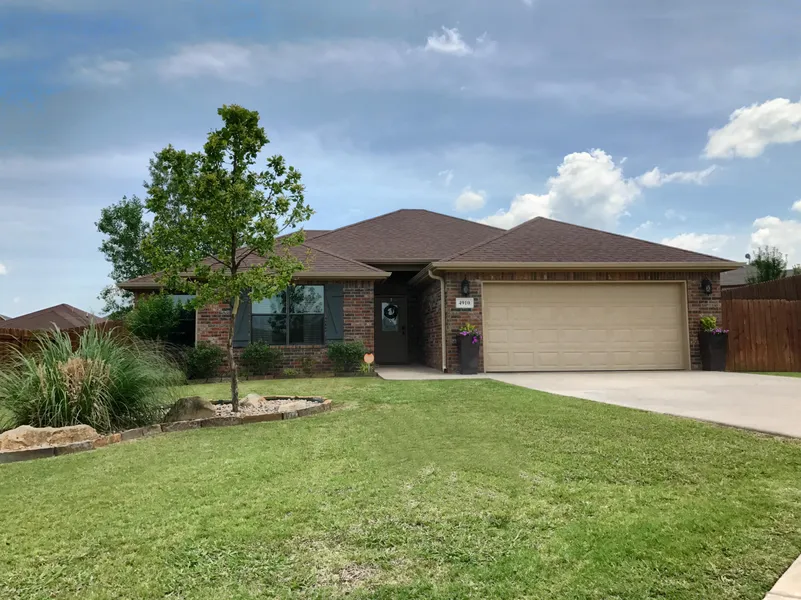 This home is ideally located in a cul-de-sac with landscaped front yard that offers sprinkler system and security system that is transferable. As soon as you enter the front door you will appreciate all the windows that look out to a covered and extended patio that has a custom kitchen made specifically for this space. Seller will leave the kitchen for the next person to enjoy. Just imagine cooking out with friends and family. There is also a small storage area that was made for rakes, shovels and such that will also remain.