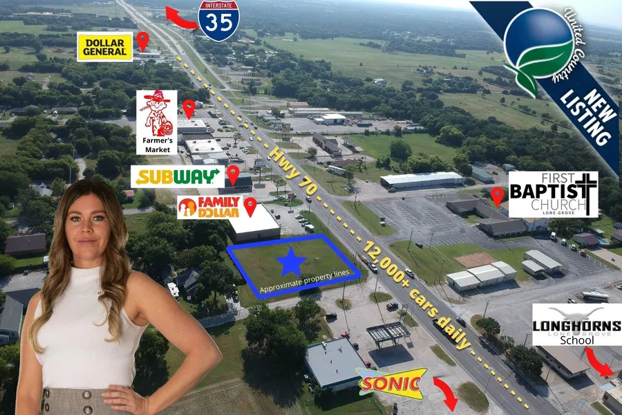Research Parcel InformationFrom I35 Go West to Lone Grove at Main Street look for our sign. Commercial Corner Lot