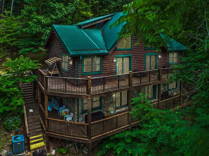 Luxurious Lake Cabin Living! Over 200' of gentle lake frontage, gorgeous custom built log home, and a double aluminum dock equate to the dream lake property that you have been working for your whole life! This home was the personal capstone for a local builder and no detail was overlooked from the Brazilian walnut floors, curly maple cabinets throughout, true log construction, privacy, and views. Situated on over 4 acres, it is the only home on this side of a peaceful cove on one of the nations cleanest and most beautiful lakes. Well planned out with all the necessities on the main level, this could be a full time residence, vacation home, or powerhouse rental. Every room in the house has a lake view, with the upstairs loft currently utilized as a third sleeping space with a full bath. Main level has the master suite with a spacious bath and massive closet, as well as the kitchen, dining area, half bath, laundry, and living area with stone fireplace and vaulted ceilings with exposed beams. Lower level is all tile with another bedroom, full bath with jetted tub, and massive game area accented by a stone wood-burning fireplace. Both levels have wrap around decks an easy stroll from waters edge.