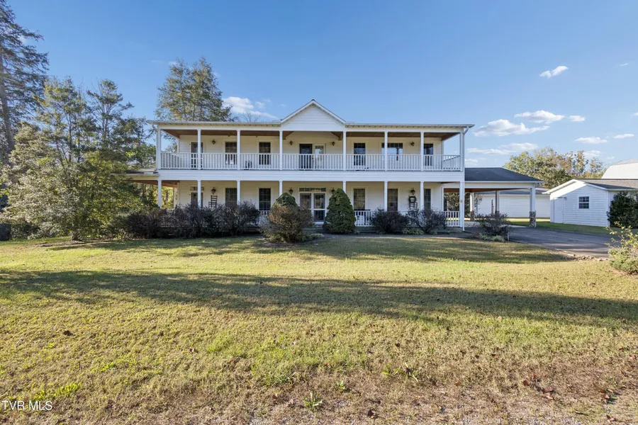 FIRST TIME ON THE MARKET - RARE OPPORTUNITY! 69.13-acre farm with 4,256 square foot farmhouse, gazebo, 1,248 square foot oversize garage, 2-car carport, 15x35 detached garage and 27x48 loft barn on rolling pastureland. The main level features an open concept layout with fully equipped kitchen with center island, great room with stone fireplace and adjacent dining area; laundry room with utility sink, large living room, 3 bedrooms with fireplaces, 2 full baths, family room and sunroom. The second level features another large family room and the primary bedroom with fireplace, en-suite bath, dressing area, built-ins and walk-in closet. Enjoy fabulous outdoor living space: Covered wrap-around porch, back deck, screened-in back porch, gazebo, balcony, small creek, mature landscaping, trees and over 69 acres of rolling pastureland. Other highlights are: hardwood flooring and ceramic tile throughout, security system, built-ins, 5 fireplaces, great parking and garage space, pay county taxes only and located in Greenbelt. The home needs a little TLC and has great potential. Great location, close to schools, shopping, dining, medical facilities, ETSU and Milligan University.
