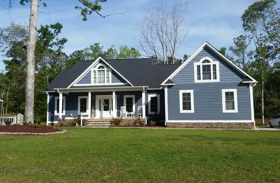 Custom built, upgraded home w/ all the bells & whistles a new owner will appreciate (see sheet)! Enter from the inviting front porch into the foyer....Custom trim package throughout with crown molding, chair rail, picture frame molding, & baseboards. Engineered wood flooring, tile, & carpets. Vaulted ceiling in spacious living room with stone fireplace & Travertine tile hearth. Open kitchen w/ granite countertops, pantry cabinet, soft close cabinets plus a breakfast nook...large formal dining room too off the kitchen. Private, spacious master suite...bathroom has 2 walk in closets, linen closet, custom tile walk in shower w/ 3 heads, double vanity with lots of counter/cabinet space. Split floorplan w/ 2 additional bedrooms both with big closets & a full hall bathroom. Laundry room w/ storage bench off garage in home. Bonus room above garage with custom wood work...just gorgeous! Home has an alarm system. Enjoy the covered back porch overlooking back yard & patio. Outside storage building too that conveys with a John Deere riding mower. You must see all this home has to offer! White Oak Bluffs offer a community boat ramp & picnic area overlooking the river. Carteret County School district. Convenient to Cape Carteret, Emerald Isle, Swansboro, Camp Lejuene, and much more.