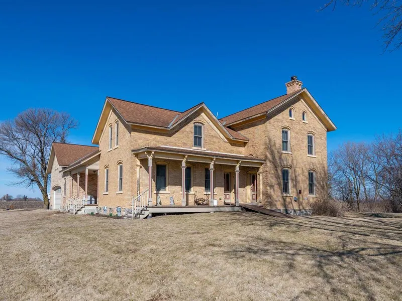 Welcome to this charming 8-acre country property featuring a beautifully restored brick farmhouse with stunning woodwork throughout. Located just off a tar road, this property offers both tranquility and convenience in a highly sought-after country setting. The spacious home boasts 5 bedrooms, 2 1/2 bathrooms, and a cozy wood-burning fireplace perfect for those chilly evenings. The rich hardwood floors add character and warmth to every room. Enjoy relaxing on the expansive front porch that offers views of the surrounding landscape, making it the perfect spot to unwind and take in the beauty of nature. In addition to the main house, this property includes a variety of outbuildings, including a barn, machine sheds, a grainery, and a siloideal for farming enthusiasts or those in need of extra storage space. Whether youre looking to start your own hobby farm or simply want to enjoy the space and privacy this property provides, its truly a rare find. With its ideal location off a tar road, youll enjoy easy access to nearby amenities while still having the peace and serenity of country living. Dont miss out on the opportunity to own this beautiful and versatile propertyschedule your private showing today! An additional 150 acres is also available separately.