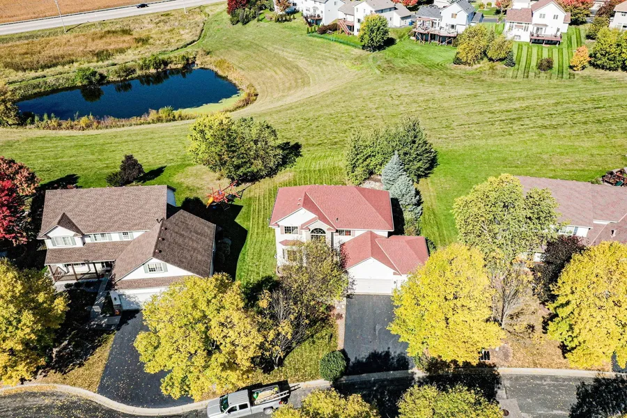 This is an excellent property with 3 bedrooms on the upper level plus a den, main floor laundry & 1/2 bath, kitchen with center island and pantry, and ready to finish walk-out lower level! So much opportunity at this home to style each space to your liking, and enjoy the comforts and amenities the property has to offer! Nestled into the end of a quiet cul-de-sac, with lovely curb appeal, excellent well kept condition, and beautiful, lush lawn looking over a pond! Step inside to find a charming sitting room with bay windows and continue into the living room with gas fireplace and built in shelving! The informal dining space and kitchen feature shining hardwood floors, center island, pantry closet, double oven, & walks out to the awesome deck looking over the pond! Upper level features a den & 3 beds including the master suite w/ perfect, private bath w/ jetted tub & separate step-in shower! The walk-out lower level is prepped and ready to finish including a family room, bedroom & bath!