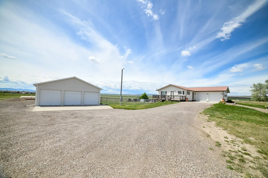 Your Dream Property Awaits! Discover the beauty of wide open spaces on this 5 acre property, boasting breathtaking views of both Square Butte and First People's Buffalo Jump. This 4- bedroom, 3 - bath home features an open and functional floor plan. Step into the recently updated warm hickory kitchen, which include a large island perfect for entertaining, abundant cabinet space, stainless steel appliances, The primary en-suite offer double closets and an attached bathroom. The lower level features two more bedrooms, and a cozy family room that leads to a built in bar area, a spacious laundry room, and an additional bathroom. For your comfort, the home is equipped with an RO water filtration syste, central air, and an attached oversized double garage that is heated. Additionally the detached 34' x 66' heated shop with three overhead doors provides versatility for various projects. An extensive chain-link fence surrounds the large backyard, which includes a dedicated area with garden beds. This property offers a little bit of everything - whether you want to live our your homesteading dreams or simple enjoy the space while relishing modern amenities. Located just 15 minutes from Great Falls, this home is ready for you!